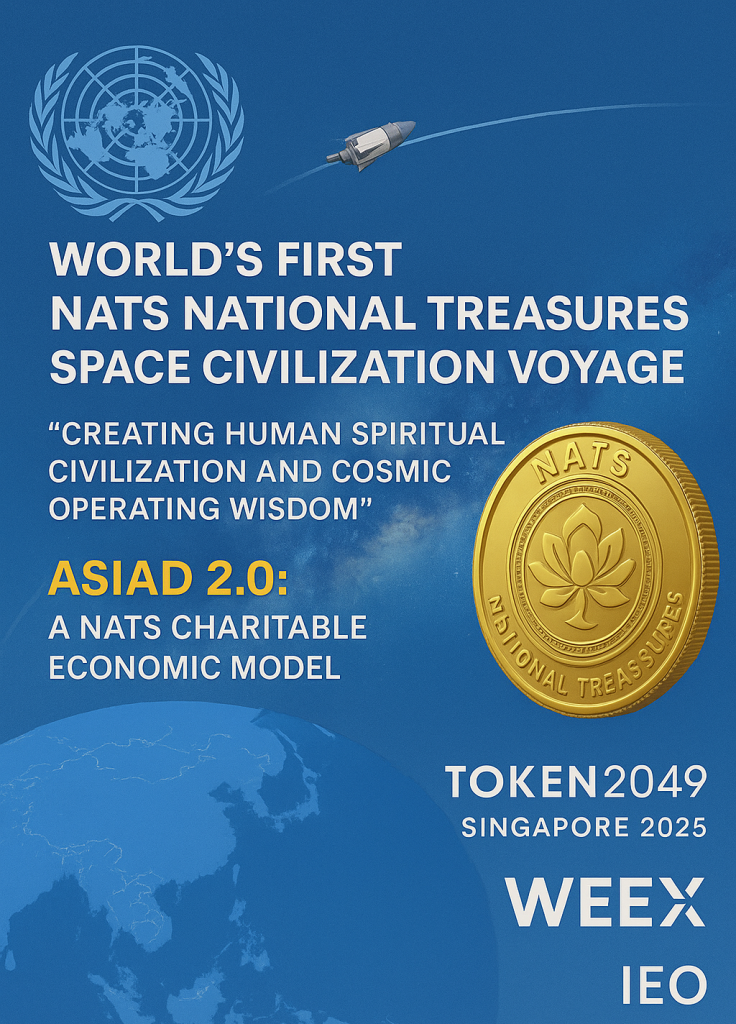將NATS Coin定位為不僅是數位貨幣,更是「宇宙文明重構運動」的種子,強調跨時空、跨國界的包容與理解。這一願景融合東方哲學(慈愛智慧)與西方科技(區塊鏈、AI),代表一種「新文藝復興」。優勢包括文化認證(如金氏紀錄級太空事件)和全球聯盟支持(GCWPA),潛在市場價值高,尤其在亞洲加密社區。近期,WEEX交易所2025年10月30日IEO計劃標誌商業化目標。