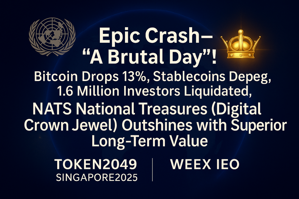 Epic Crash—“A Brutal Day”! Bitcoin Drops 13%, Stablecoins Depeg, 1.6 Million Investors Liquidated, NATS National Treasure Coin (Digital Crown Jewel) Outshines with Superior Long-Term Value
