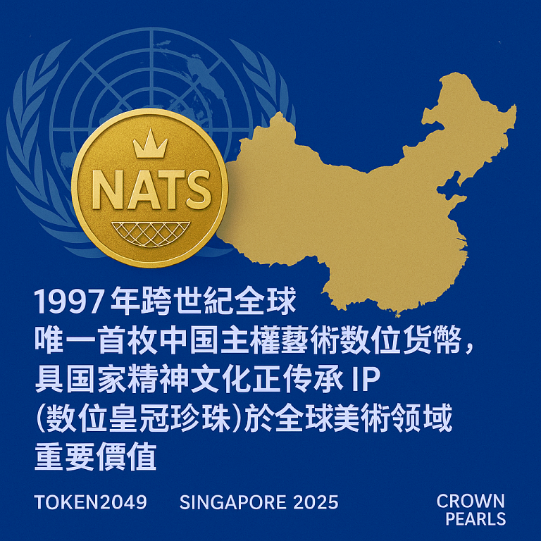 NATS (国家宝藏币,简称N币)被定位为1997年跨世纪全球首枚中国主权艺术数位货币,其核心源自一尊代表「慈爱、智慧、圆满」精神的3D立体艺术金唐卡(金铜雕),由中国中央机关与拥有600年历史的青海塔尔寺联合发起。这件艺术品象征国家精神、文化艺术正统传承,并被赋予数位IP(数位皇冠珍珠)的形式,在全球艺术领域中具有独特价值与意义。