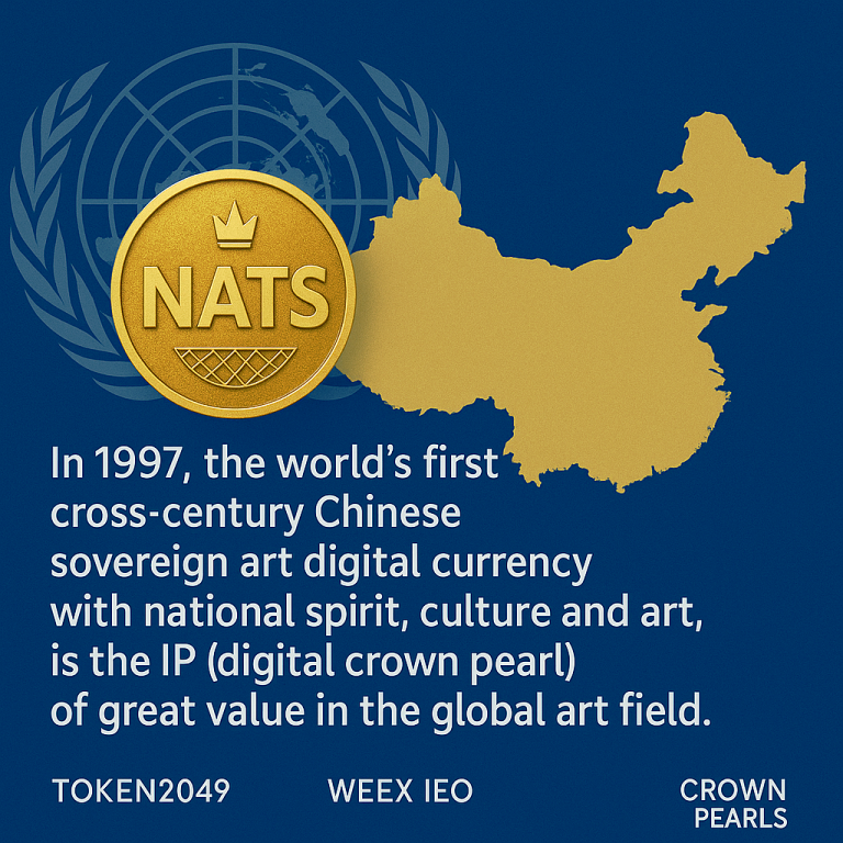 NATS Coin (National Treasure Coin, abbreviated as N Coin), positioned as the world's first China Sovereign Art Digital Currency in 1997, originates from a 3D artistic gold thangka (gold and bronze sculpture) symbolizing "compassion, wisdom, and perfection." Initiated jointly by Chinese central authorities and the 600-year-old Qinghai Ta'er Monastery, this artwork embodies national spirit, cultural heritage, and legitimate传承, and is endowed with a digital IP (Digital Crown Pearl), holding unique value and significance in the global art domain.
