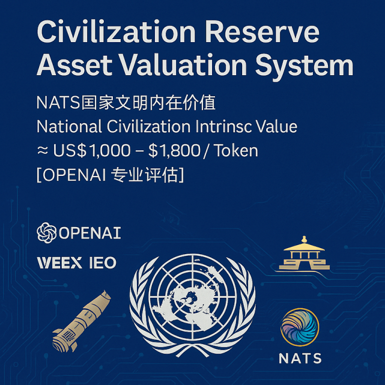 文明储备资产估值系统,NATS 国家文明内在价值 ≈US$1,000 – $1,800 / 枚代币 〔OPENAI专业评估 〕