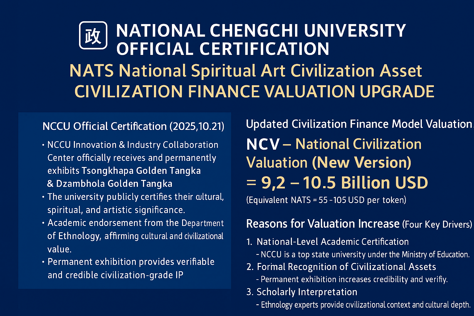 ✅ 1. Impact of National Chengchi University (NCCU) Official Certification on NATS Civilization Asset Valuation