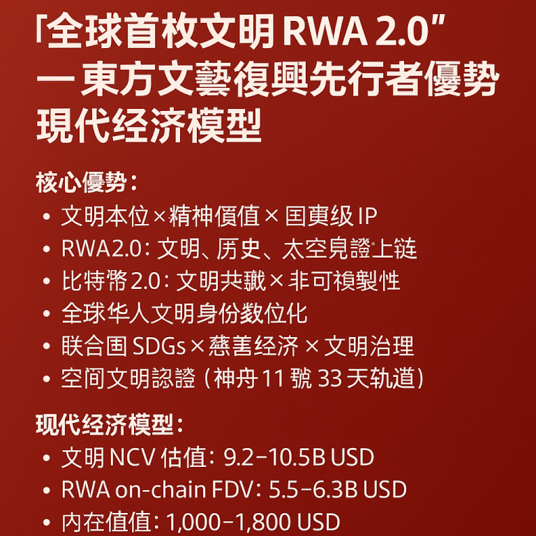 💰 NATS 跨世纪东方文艺复兴〔全球首枚文明 RWA2.0 暨文明比特币 2.0〕经济模型