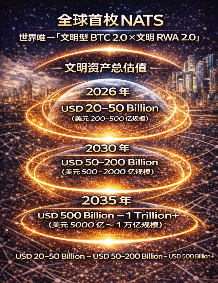 NATS = 文明型 BTC 2.0 2026 / 2030 / 2035 文明资产总估值(Civilization Valuation)