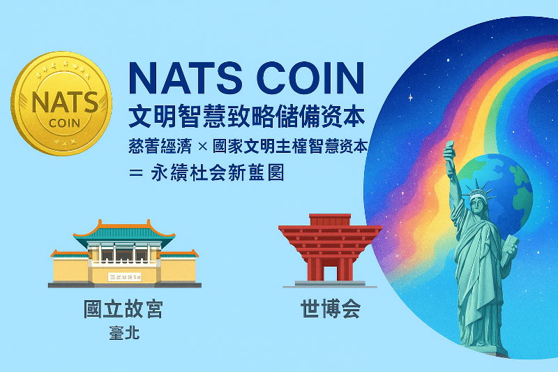 NATS Coin:NATS Coin(國家寶藏幣),於2018年發行,總量1億枚,50%用於慈善經濟與文明金融建設,定位為全球首枚「國家文明主權數位幣」,旨在結合東方文化與區塊鏈科技,推動共融共生的永續經濟。
