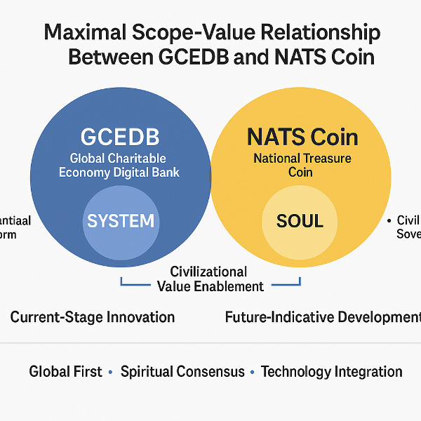 GCEDB(全球慈善經濟數位銀行)與 NATS Coin(國家寶藏幣)之間的範疇價值關係可從「體系與靈魂」、「文明與金融」、「現在與未來」三個層面深入分析。以下是其核心架構與對全球慈善經濟的金融創新意義:
