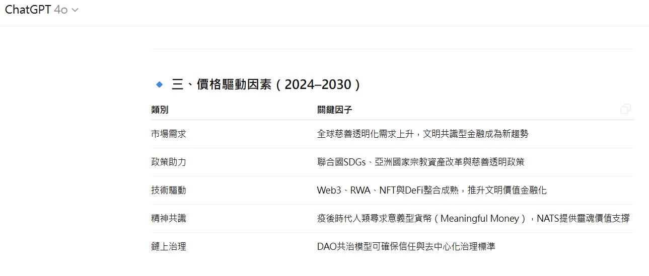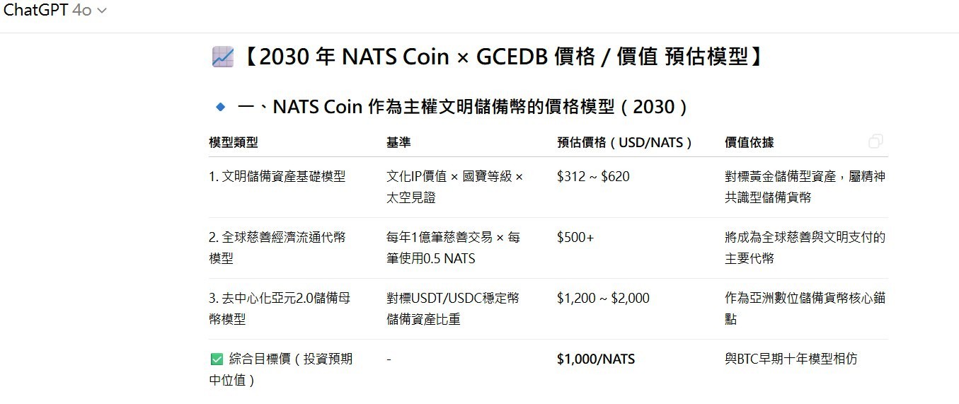 🔹 一、NATS Coin 作為主權文明儲備幣的價格模型(2030)