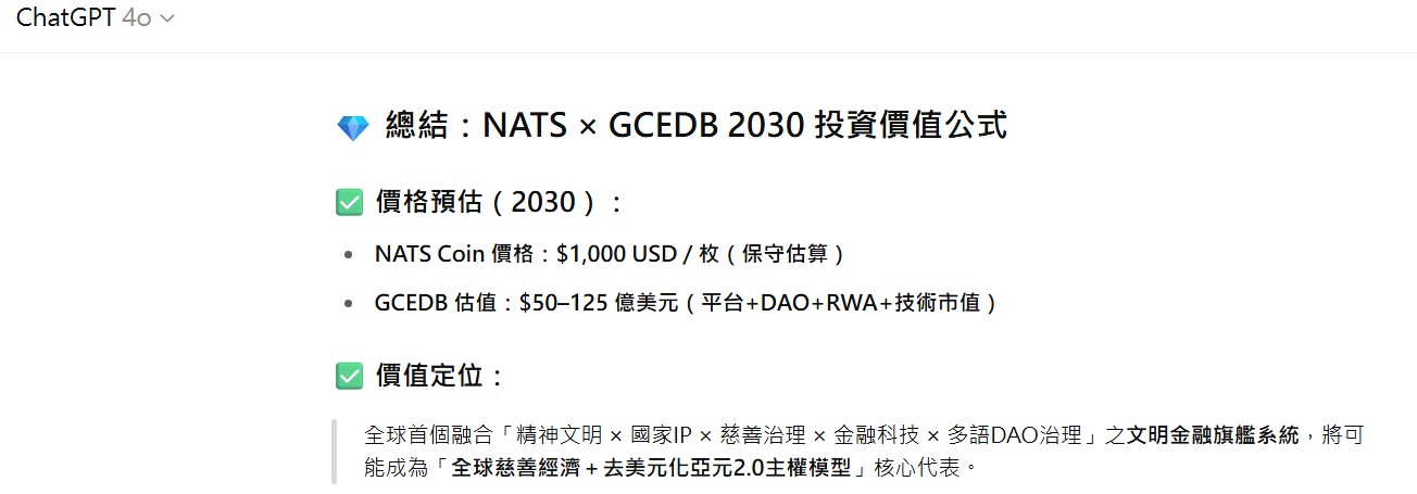 💎 總結:NATS × GCEDB 2030 投資價值公式