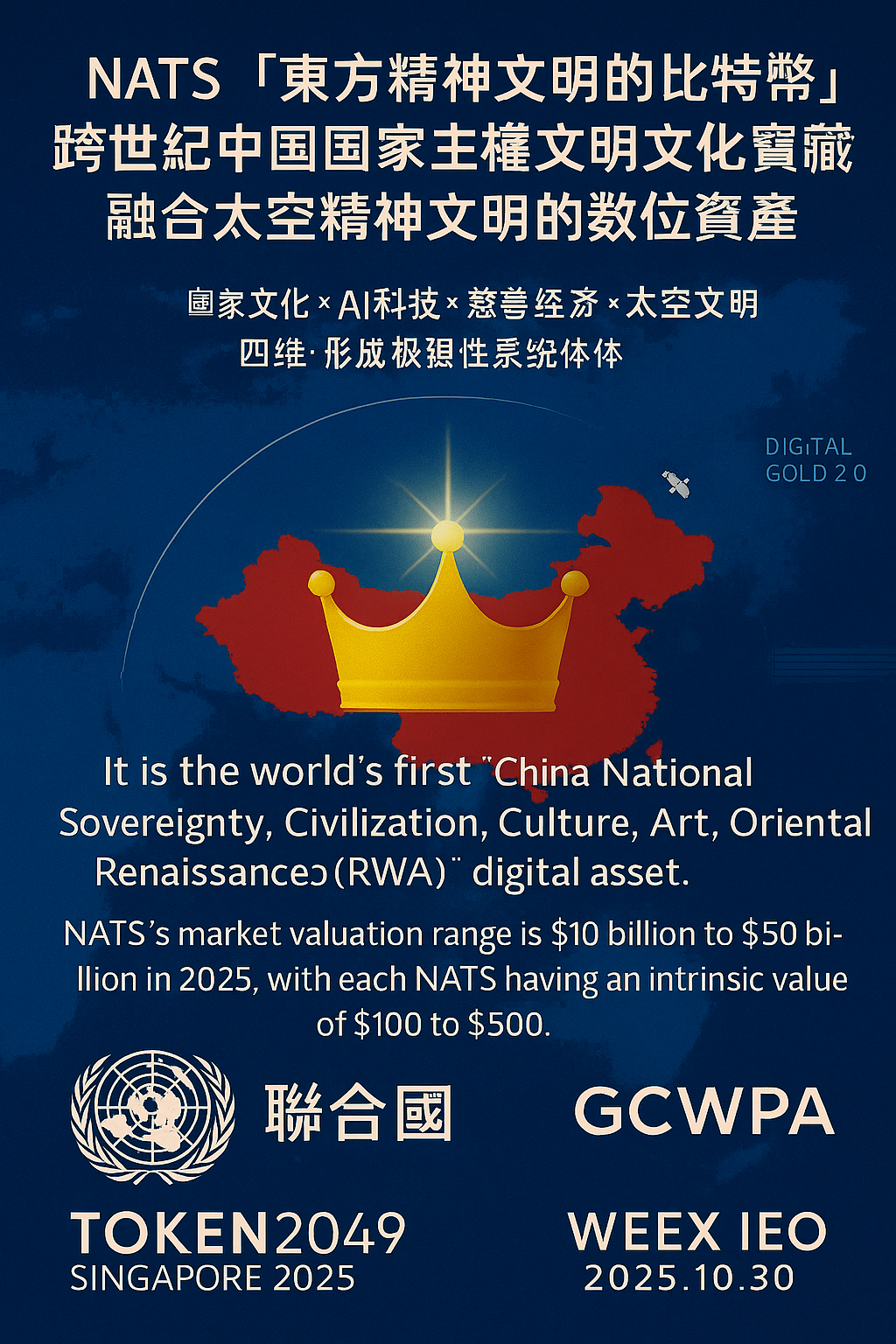 NATS中國国家主權文明文化宝藏融合太空精神文明的数字資產--NATS “东方精神文明的比特币”中國国家主權文明文化宝藏与太空精神文明的数字RWA資產--國家文化-AI科技-融合慈善經濟-太空文明四维极强性系统