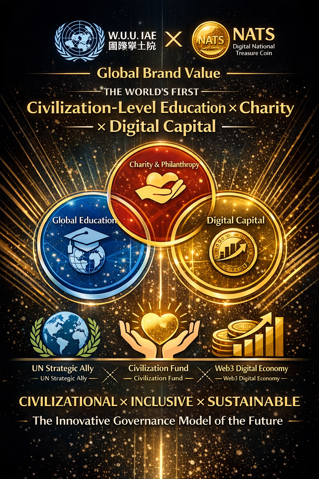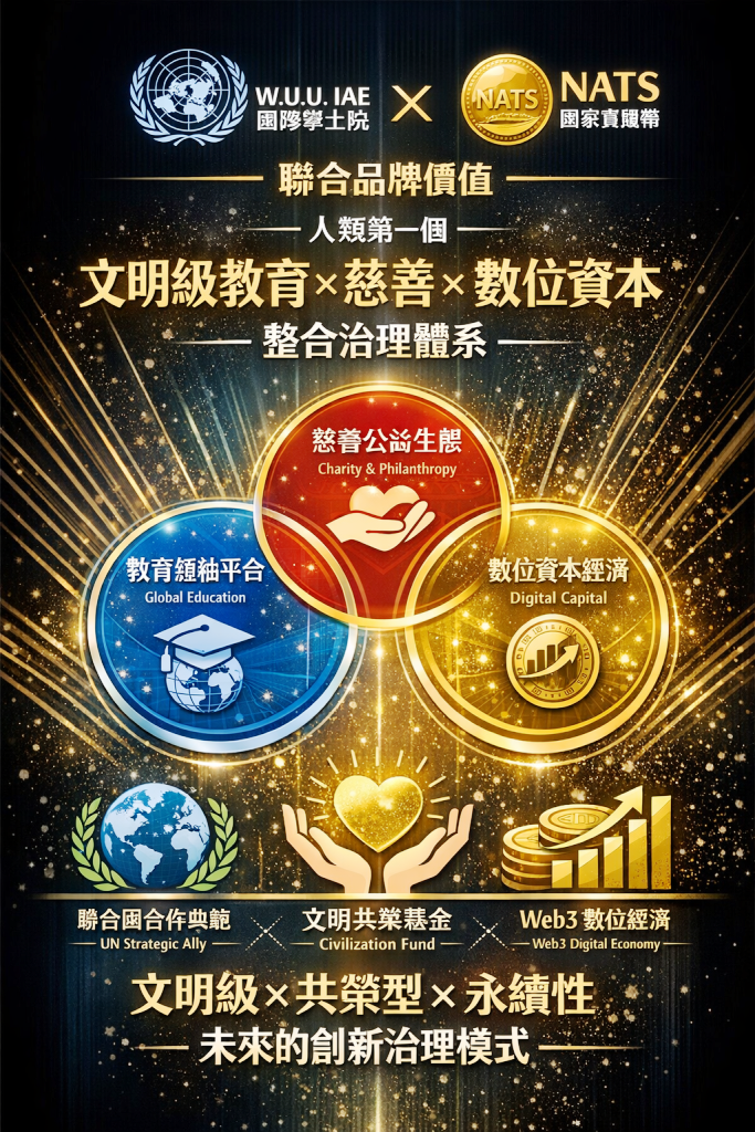 聯合國W.U.U IAE 國際學士院× NATS國家寶藏幣 聯合品牌價值定位-是人類第一個「文明級教育 × 慈善 × 數位資本」整合治理體系 聯合品牌Joint Brand Positioning Framework