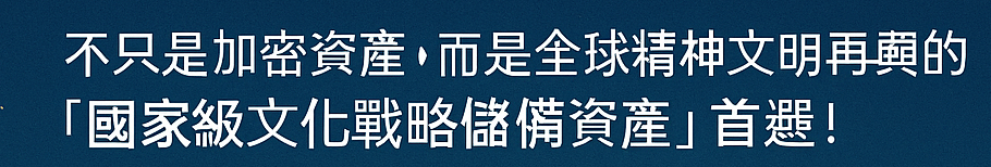 💰 定位為數位黃金(Digital Gold):國家級文化藝術稀缺性 + 獨一高儲值性