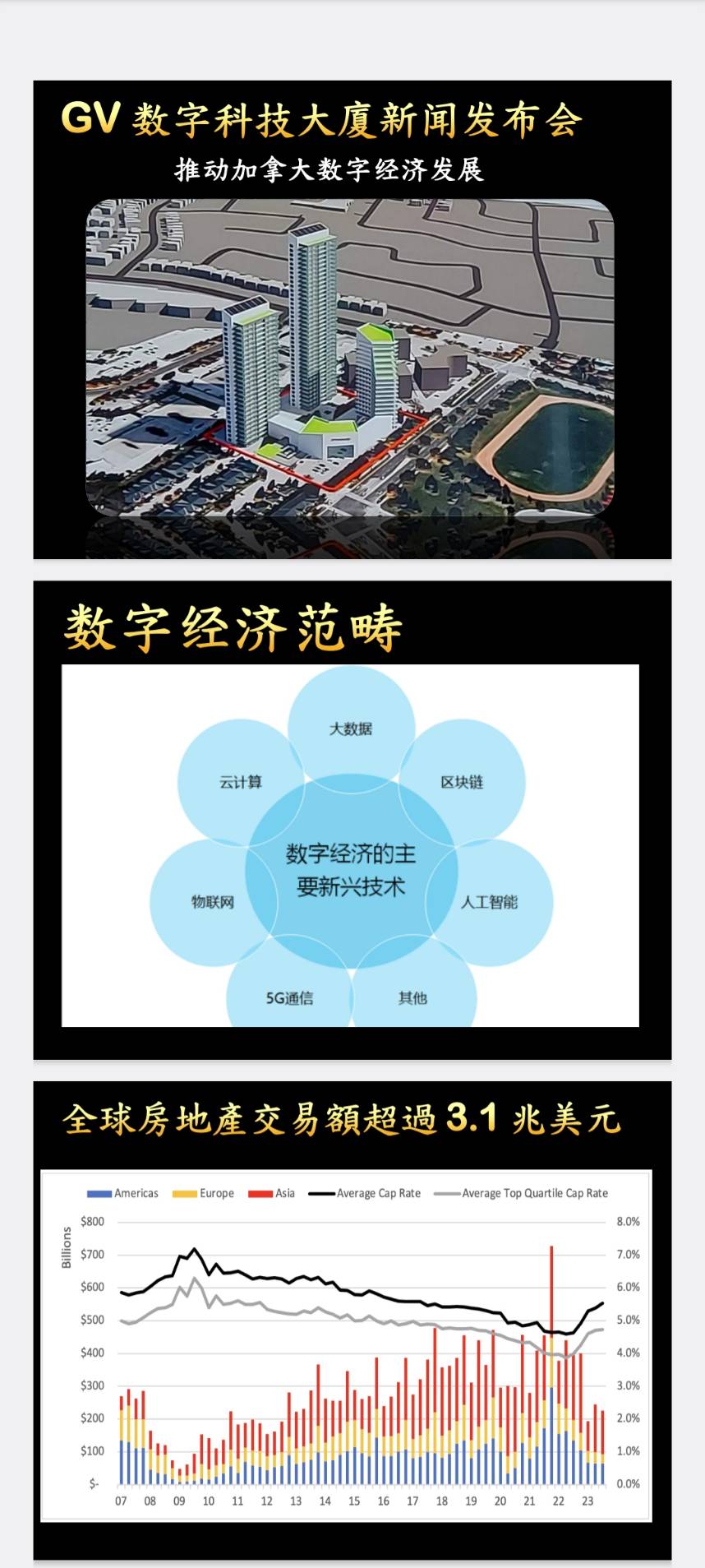 2024 年5月19日下午3点在多伦多远见大厦举办了一次特别意义的签约仪 式,远见控股集团CEO陈忠和美国ABB-FG董事西蒙. 邓签署合作协议,双方合作将远见位于Moatfield Dr,Toronto,Ontario 95-105#两栋大楼转型升级为“GV 数字科技大厦”。ABB-FG 使用最前沿的数字化技术及专业的证券化法律,将各 类现实世界资产 (RWA), 在最可靠的公链及通证平台支持下,完成美国证监会 Reg.D/S/A+注册登记,指定在全球各大知名的数字资产交易所 (ATS) 进行无间断的交易。ABB-FG将95-105#数字化和证券化后,在ATS进行全球交易,将 大大提升该物业的价值,同时,对快速提升远见自身的经济增长,实现远见产 业的互联网化、数字化和智能化,降低产业成本、提高用户体验和增加产业收 入也产生巨大的作用,远见也将成为加拿大数字经济的先锋。
