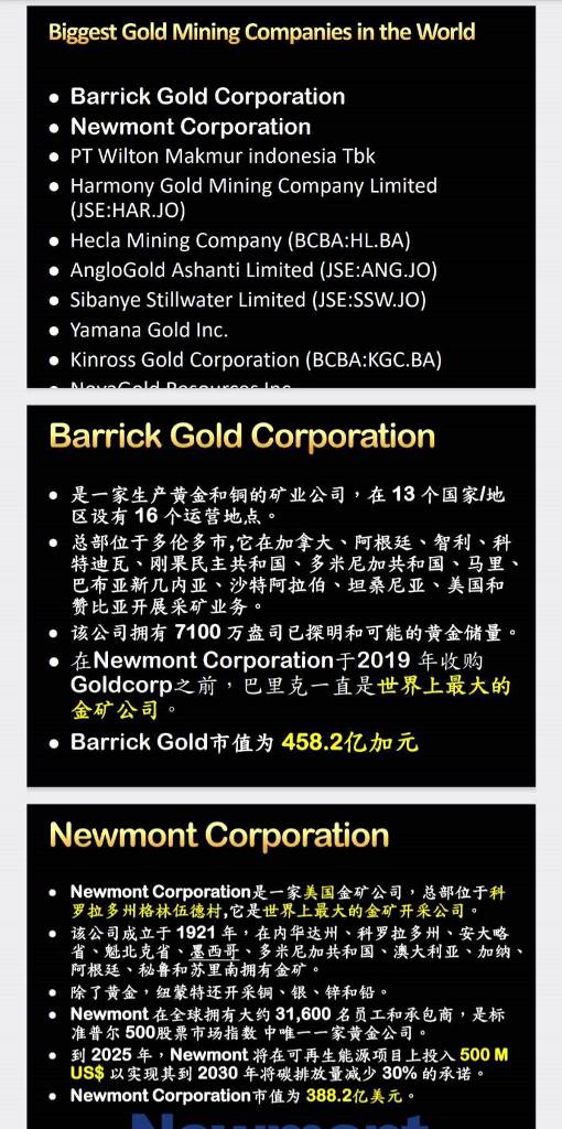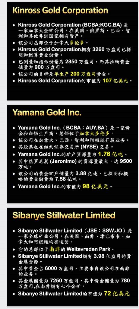 与 Newmont Corporation、Barrick Gold Corporation和