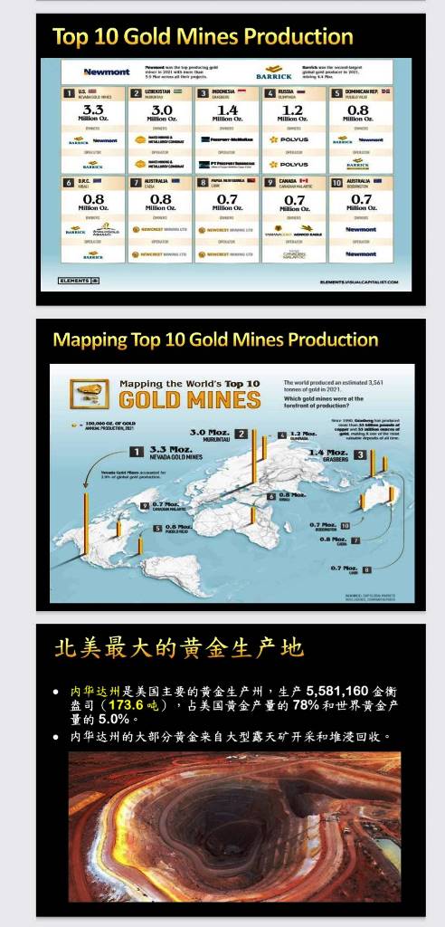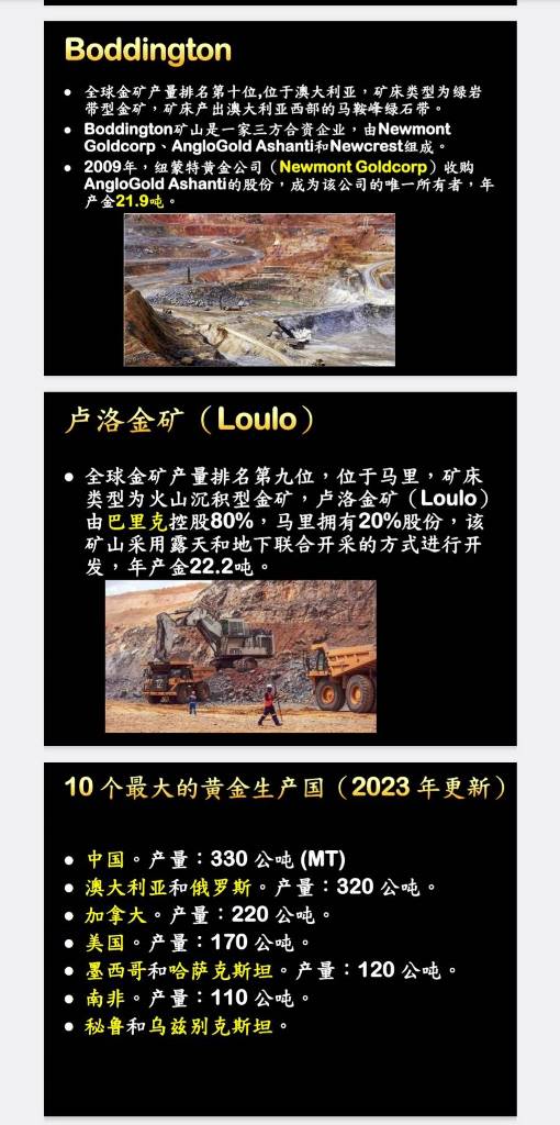 中国是世界第一大黄金生产国。 中国约占全球金矿